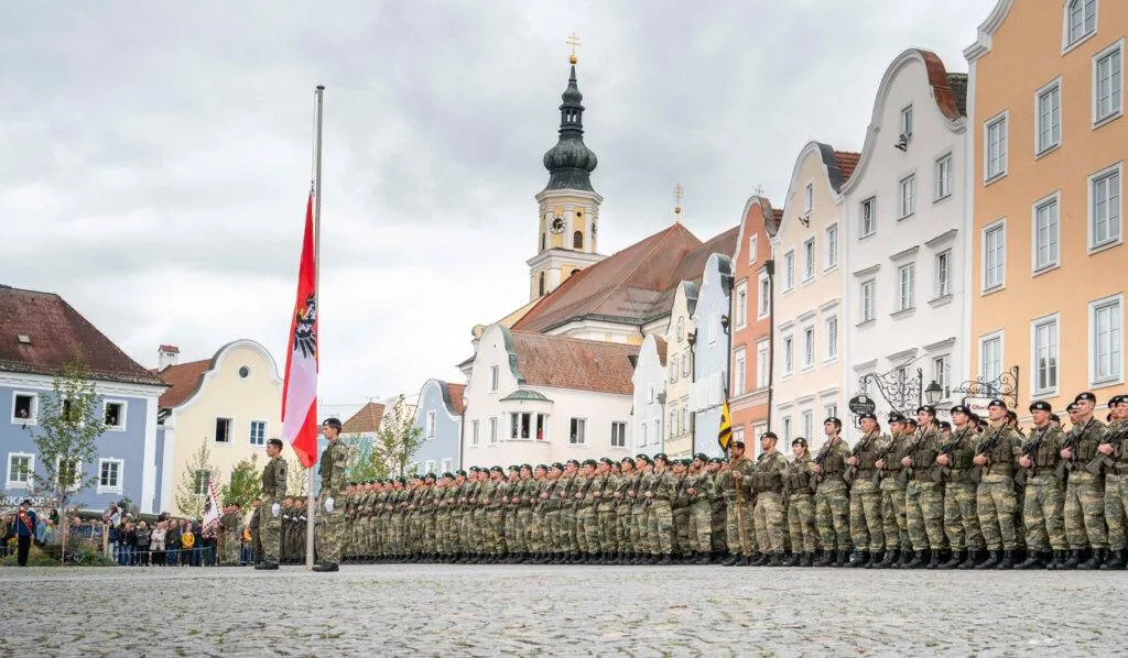 270 Rekruten sprechen vor der malerischen Kulisse der Seilerzeile in Schärding ihr Gelöbnis