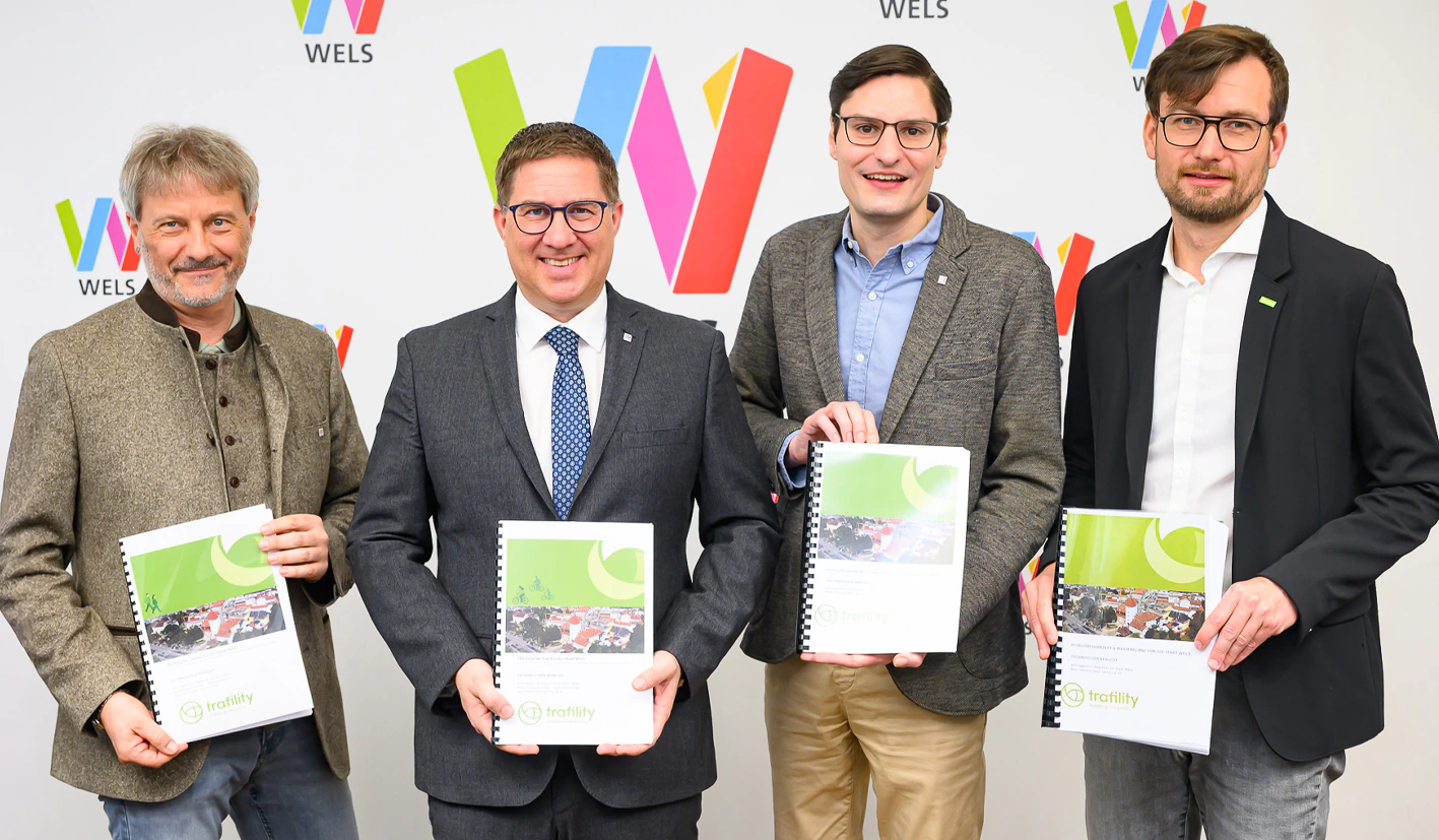 Nach fast 30 Jahren – das letzte Gesamtkonzept stammte aus dem Jahr 1996 – erhält die Stadt Wels eine neue strategische Grundlage für ihre Verkehrsplanung. Die von der Fachfirma Trafility GmbH ausgearbeiteten Konzepte reagieren auf das starke Stadtwachstum und den technologischen Wandel. Das klare Ziel: Die Förderung aktiver Mobilität, ohne die Qualität des motorisierten Individualverkehrs (MIV) aufzugeben.